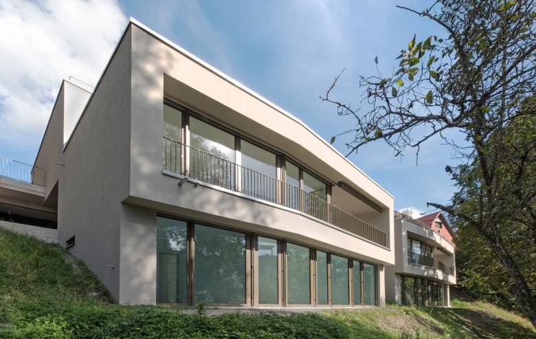 An sonniger Westhanglage in Gipf-Oberfrick direkt am Bruggbach gelegen haben wir eine EFH-Wohnsiedlung realisiert. Sie besteht aus fünf Einfamilienhäusern, die sich zu einem Terrassenhaus-artigen Ensemble fügen. Die Häuser sind auf zwei Linien gesetzt: drei Wohneinheiten reihen sich auf der oberen Hanglinie ein, zwei Einheiten auf der unteren.