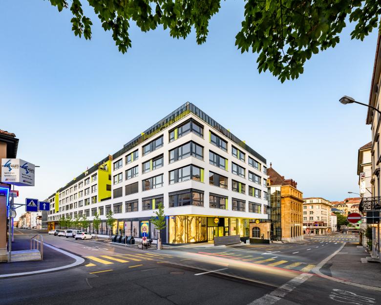 Ce projet d'immeuble mixte se construit au centre ville de La Chaux-de-Fonds, avec toutes les contraintes que cela implique, notamment en terme de problématiques liées aux études d'impact et à la planification du chantier au centre-ville. Le projet s'est fait en étroite collaboration avec les autorités de la métropole horlogère. Conçue dans un souci d'intégration urbaine, la construction n'est pas soumise aux marchés publics mais des procédures restrictives sont demandées par le Maître d'Ouvrage. Le bâtiment offrira des conditions de vie performantes en termes de dimensionnement des pièces, de hauteur d'étages, d'isolation, de développement durable, de lumière naturelle, de vues comme de privacité.