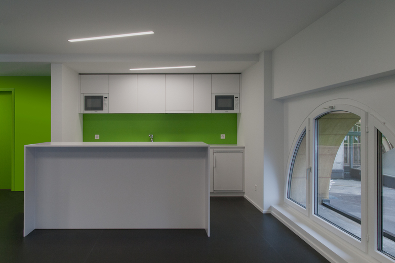 Transformation et création de nouveaux locaux Trans N. L'idée était de créer un espace d'accueil public et guichets, ainsi que des espaces administratifs.