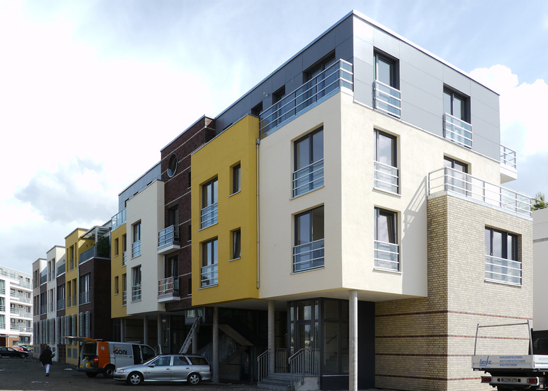 Die Herausforderung bestand darin, die verschiedenen Teilbereiche entwurflich und konstruktiv zu einem Ganzen zu entwickeln und das Projekt insgesamt zum Teil des Quartiers werden zu lassen. Bei der Fassadengestaltung wurde der Anspruch umgesetzt, die vielfältige Nutzung jeweils erkennbar zu machen und dennoch ein homogenes, zusammengehöriges Bild zu entwerfen.