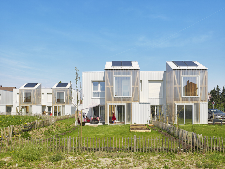 Die Wintergärten prägen als aktives und passives energetisches und raumbildendes Element die Identität der kleinen Wohnsiedlung.