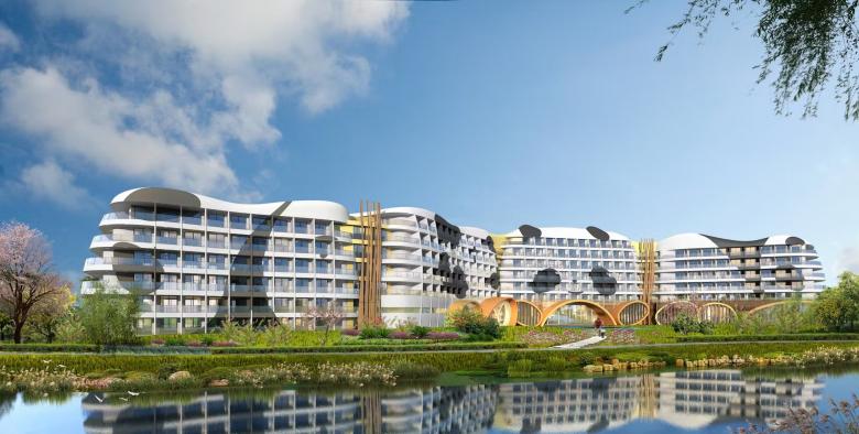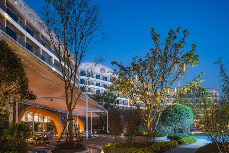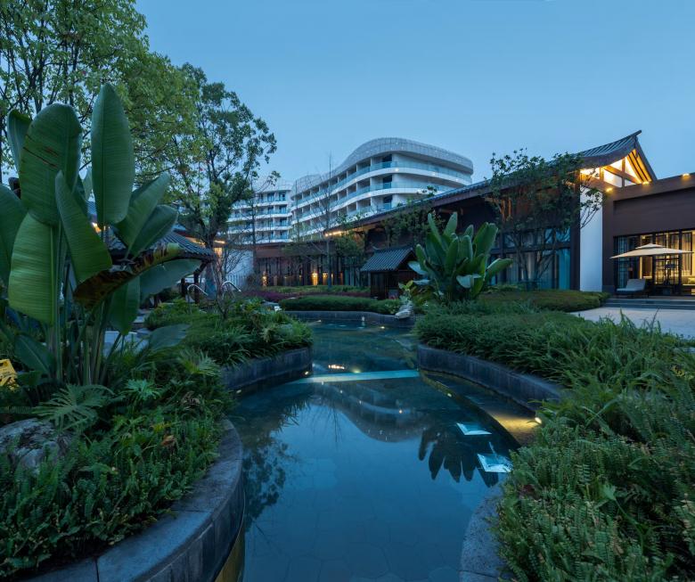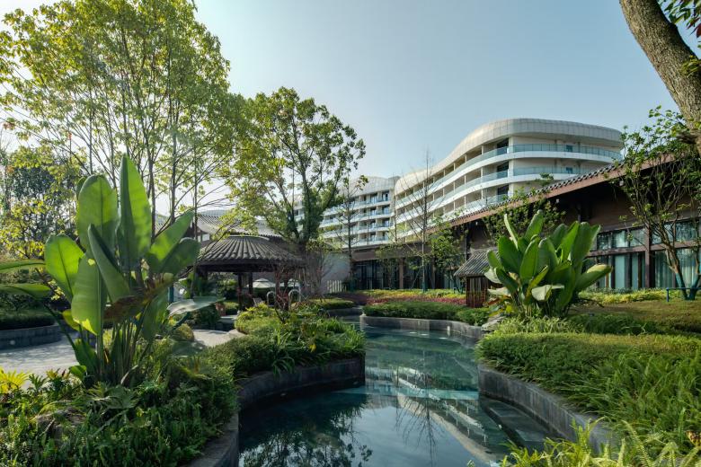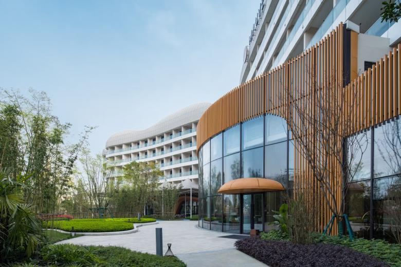 The 4-star leisure and theme hotel on the banks of a lake, nestled in a subtropical landscape, is part of a tourism complex that the real estate giant 'Wanda Group' has been investing in since 2016 and which in turn is part of a much larger urban development project called 'Chengdu Wanda City'.