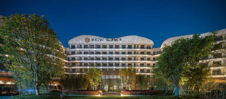‘Mauve Glamor’ Hotel is located in the south-western corner of the complex and develops its own charming inland landscape along the Heishi River, which flows parallel to the lakeshore and is only separated from the lake by a narrow dam.