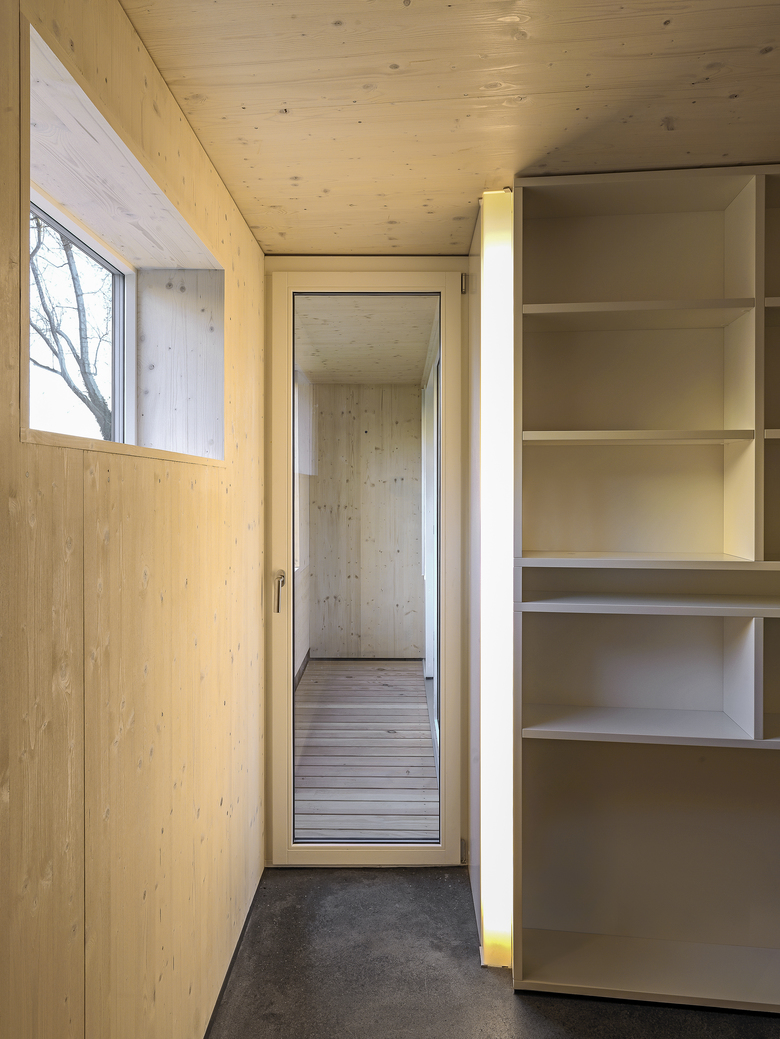 Das inventarisierte alte Wohngebäude aus Familienbesitz erhielt einen flachen länglichen Anbau aus Holz, welcher direkt an den Park hinter der Museggmauer angrenzt. Im Sinne eines "Stöcklis" dient der dazugewonnene Raum einem Teil der Familie als Wohn- und Kunstatelier.