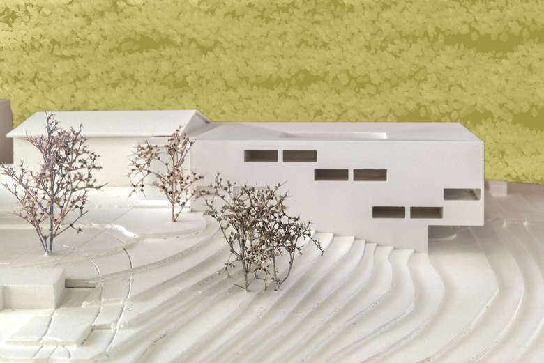 Der neue Baukörper ist das Hauptelement der Anlage und fügt sich als muraler Kubus in die Topographie der offenen Landschaft über dem Sempachersee ein.