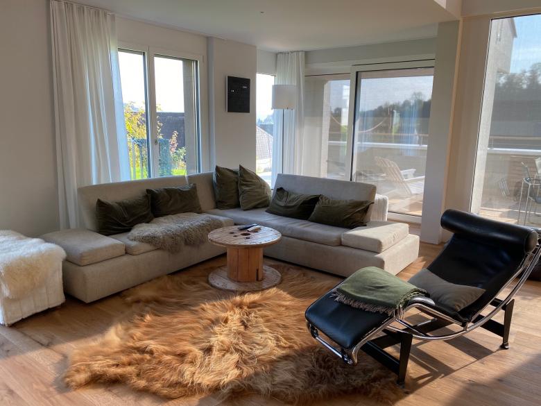 Bei diesem Auftrag handelt es sich um ein Einfamilienhaus aus den 70er Jahren, welches umgebaut und saniert wird. Die Form des Gebäudes soll erhalten bleiben, insbesondere auf dem bestehenden Keller aufgebaut werden. Die Erschliessung geschieht neu talseitig über das Untergeschoss. Im Erdgeschoss sind die Wohnräume mit Küche und Elternschlafzimmer mit Bad angeordnet. Im jetzt ausgebauten Dachraum kommen zwei Zimmer mit eigenem Bad zu liegen. Verbunden werden die Geschosse mit einer zentralen Treppenanlage. Zusätzlich bekommt das Haus eine Schleppgaube über zwei Geschosse, die eine grosszügiges Wohngefühl und viel Licht in die Räume bringt. Die Vordächer werder aufgelöst und führen so zu einer modernen Architektursprache. Die Materialisierung innen und aussen ist bewusst einfach und modern gehalten.