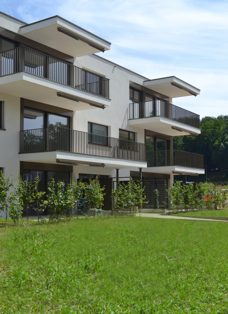 Die moderne und klare Architektur zeigt sich in Wohnungen mit vollflächigen Fensterfronten, helle und lichtdurchflutete Räume, grosse Terrassen, Gartensitzplätze und Balkone. Die vielseitig nutzbaren Zimmer bieten Rückzugsmöglichkeiten für Erwachsene, Kinder und Gäste. Ob als Schlaf-, Gäste-, Büro-, Lese- oder Spielzimmer, alle werden dank dem flexiblen Konzept ihre Lieblingsräume finden.