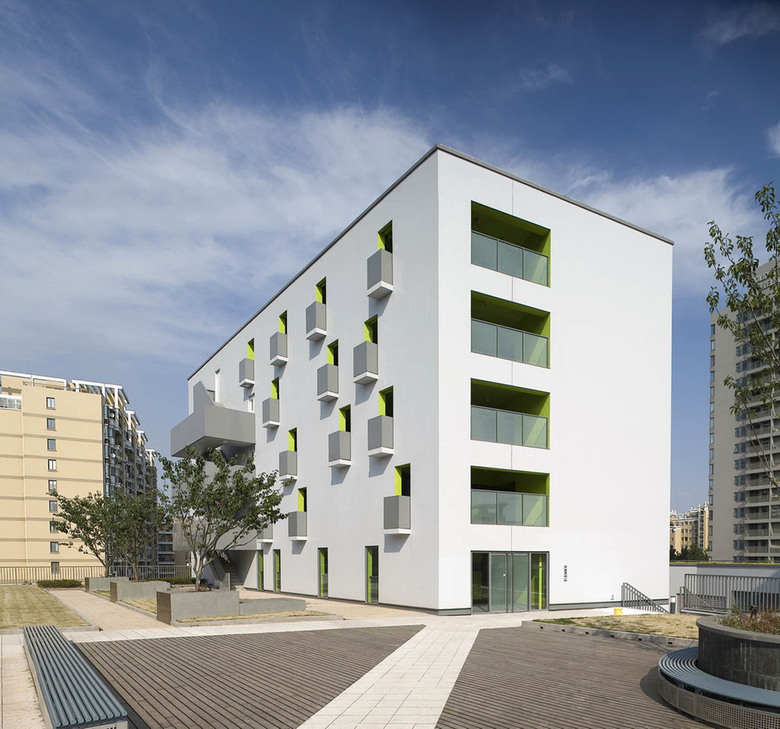 The community center serves a residential district of 0.51 million sqm apartments with 12,700 residents. The folding volumes form rich exterior spaces between buildings, which will be shared by various groups of people at the community center. The design intends to provide quality to the exterior public spaces between slab buildings, and inject vigor to the whole residential district.
