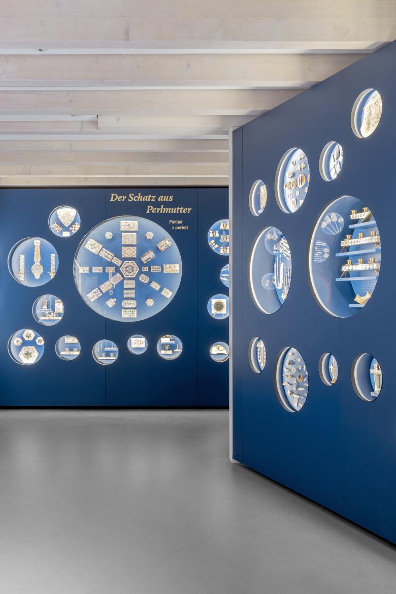 Der Neubau verbindet die bestehenden Gebäude zu einem neuen Museumskomplex für die Bewahrung, Erforschung und Vermittlung des kulturellen Erbes Perlmutter. Sein Erscheinungsbild ist aus dem Aufbau der Muschel abgeleitet: raue Schale und kostbares Inneres stehen im Kontrast und bilden dennoch eine Einheit. Die windschief verformte Gebäudehülle transformiert das Bild der Muschelschale und setzt ein Signal in den öffentlichen Raum. Über die Betonschale fließt kontinuierlich Wasser in einen Brunnen und verweist so auf fließendes Wasser als Lebensgrundlage der Muschel.