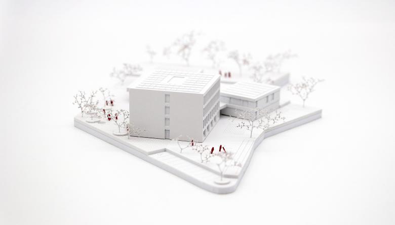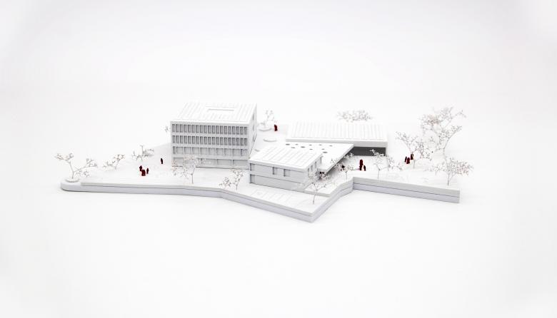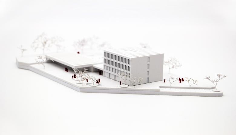 Für diesen Wettbewerbsentwurf einer Volksschule ist der Gedanke der städtebaulichen Integration maßgeblich gewesen. Zudem war es wichtig, der gesamten Gemeinde einen Mehrwert zu bieten.