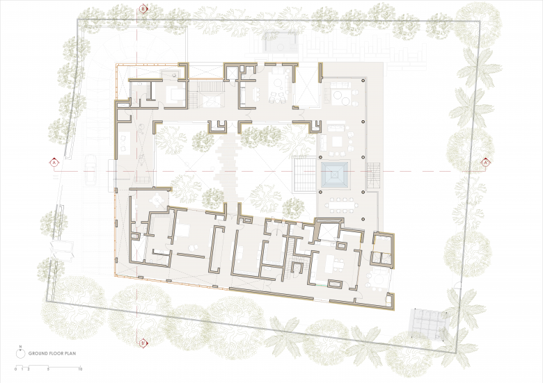 Central to this inquiry was the courtyard—not merely as a typological gesture, but as a performative core. It was imagined as a shaded, verdant lung at the heart of the house—both spatially and climatically generative. Flanking this were triple-height liwans, their scale serving dual purposes: spatial drama and environmental function. These deep transitional zones along the southern edge operated as thermal buffers, mediating between interior life and exterior harshness.