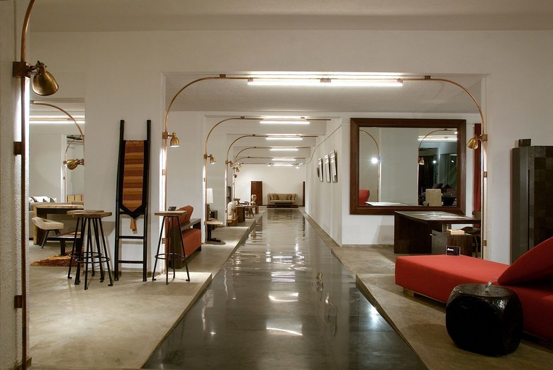 A non-descript basement, with a stepping topography needed to be converted into a retail space, the first mutation being a furniture store.