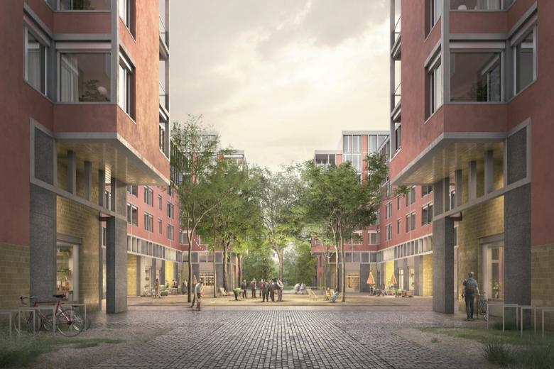 Die bestehende Wohnsiedlung Dennlerstrasse soll nachverdichtet und aufgewertet werden. Wo möglich werden die Gebäude erhalten, saniert und aufgestockt. Um die städtebauliche Situation zu klären und die Aussenräume klarer zu fassen, wird der Bestand zudem um neue Volumina ergänzt. Durch die interdisziplinär entwickelte Bebauungsstruktur werden die Aussenräume lesbarer, der Identifikationswert der Räume gesteigert und die Entwicklung einer neuen Mitte hilft bei der Klärung sozialräumlicher Übergänge. Zwei öffentliche Quartierstrassen an den Köpfen, eine Wohnstrasse und ein Park an den Flanken, ein siedlungsbezogener Quartierplatz in der Mitte und hausbezogene ruhige Oasen in den Höfen bilden eine vielversprechende Grundlage für ein lebenswertes neues Stadtquartier.