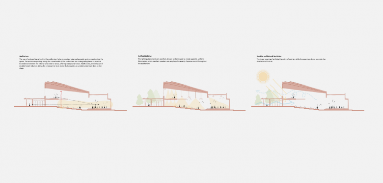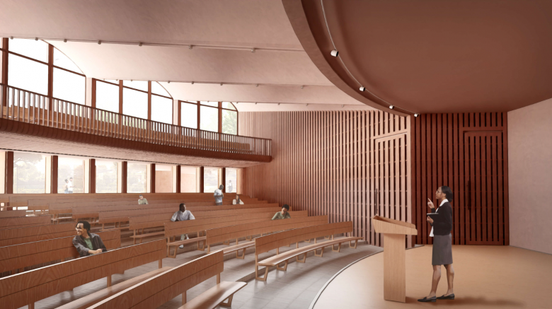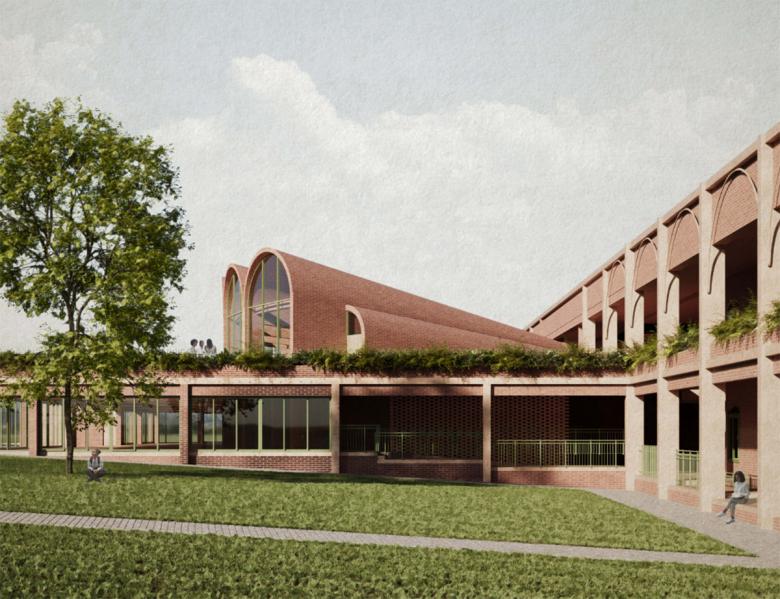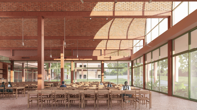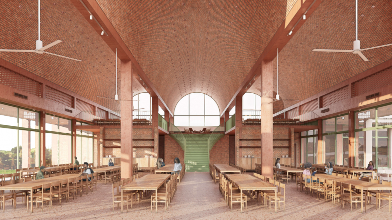 The project will be constructed almost entirely from load-bearing bricks which will be made close to the site using local clay. The design celebrates the versatility and structural potential of bricks though the use of arches, vaulting, hit and miss brickwork. While offering the campus a coherent visual identity, this material helps the client control construction costs, reduce embodied carbon and operational carbon and minimize longer-term maintenance.