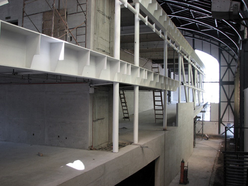 Con el fin de alcanzar estándares internacionales de exhibición, el proyecto se plantea como un volumen inserto dentro de la estructura original. El pabellón se mantiene intacto y funciona como un armazón que envuelve el volumen añadido. La estructura de la inserción es completamente independiente y produce una serie de galerías en rampa que ocupan el edificio antiguo y al mismo tiempo apenas si tocan el piso.