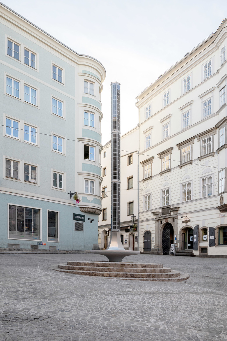 Als „Symbol“ der Erneuerung wird das Thema des Brunnens neu interpretiert und der Linzer Altstadt wieder ihr markantes Zentrum zurückzugeben.