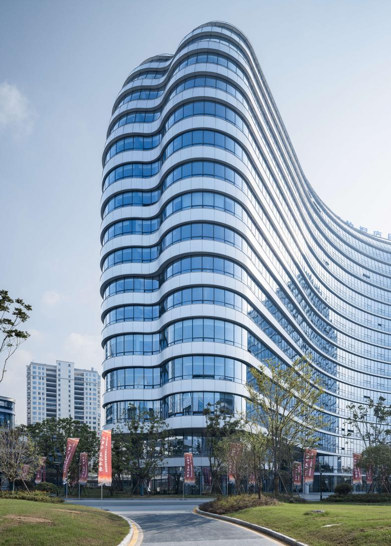Although the building features gentle curvature at its ends and skylines, modular design is employed for the internal functional spaces. To achieve a futuristic look within a limited budget, the building's curvature was optimized multiple times, and the width of the facade lines was adjusted. This allowed the creation of a full steel structure hospital – meeting China's highest Three-Star Green Building standards – at the lowest possible cost.