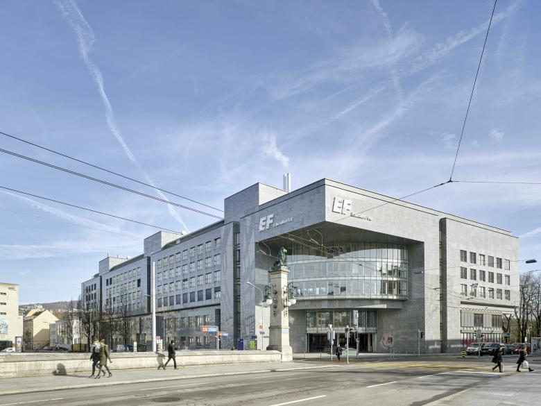 Wie kaum ein anderes Gebäude der Zürcher Innenstadt drückt die Börse mit ihrer ringförmigen Eingangsfassade ihre ursprüngliche Bestimmung aus. Infolge der Digitalisierung waren die Börsenringe jedoch nur kurz in Betrieb. Nach mehreren Umbauten verliess die SIX Swiss Exchange das ikonenhafte Gebäude schlussendlich. Neue Nutzerin ist die Sprachschule EF Education First, die in Zürich rund 800 Mitarbeitende beschäftigt. Der Umbau fokussierte auf die Gebäudestruktur. Herzstück des Dienstleistungsgebäudes ist der zweigeschossige, rund fünfzig Meter lange Lichthof, der den Börsenring als Gravitationszentrum ersetzt. Die offengelegte Kassettendecke sowie zwei neue, markante Wendeltreppen prägen den hallenartigen Raum.