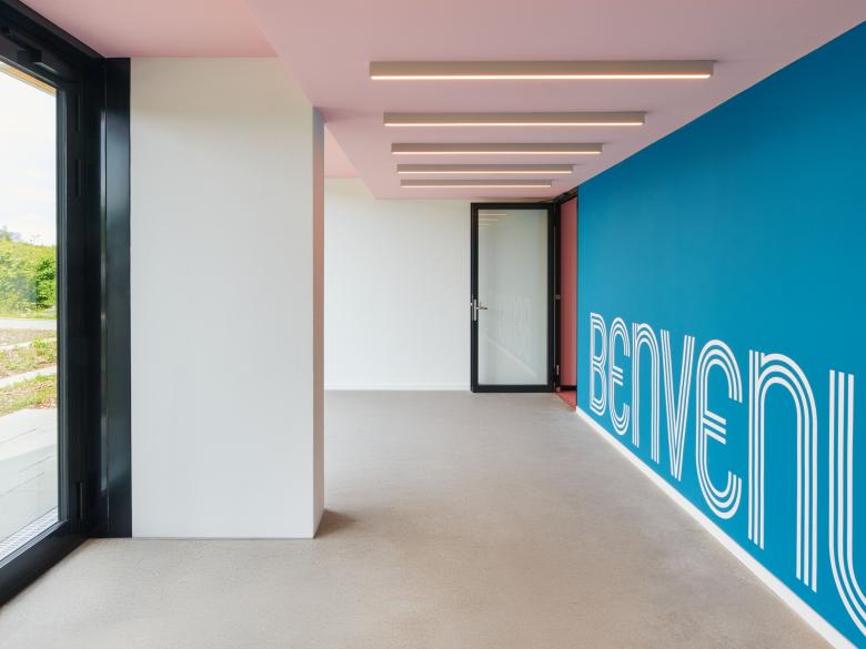 Durch seine Materialität strahlt das Gebäude eine grosse Eleganz aus. Die Aussenhülle aus eloxiertem Aluminium besticht durch ihre Einfachheit und unterstreicht mit ihrer präzisen Konstruktion die skulpturalen Qualitäten des Baukörpers. Zudem prägen die frei schwebenden Balkone sowie deren Schattendächer aus bunten Metall-Lamellen den Ausdruck des Hauses.