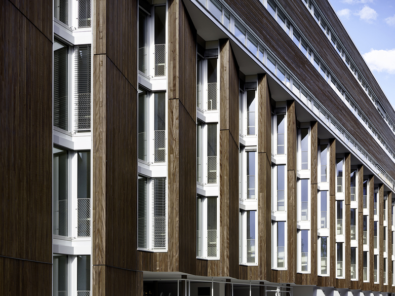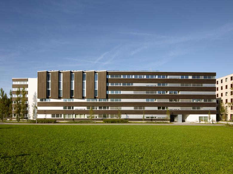 Vier einbündige von Ost nach West verlaufende Zeilenbauten werden zu zwei Wohnhäusern mit zentralem Erschliessungshof gruppiert. Ein zweigeschossiges Randgebäude im Osten, dem ETH-Campus zugewandt, verbindet und verdichtet die beiden sechs- und siebengeschossigen Baukörper zu einem städtischen Gebäudekonglomerat. Nach Westen öffnen sich die vier Zeilen zur Landschaft. Um der Lage des Grundstücks am Übergang von Stadt und Landschaft gerecht zu werden, sind die Baukörper in Länge und Höhe gestaffelt. Dichte und Höhe steigern sich von Südwest nach Nordost, von der Landschaft zur Stadt. Zwischen den Volumen entwickelt sich ein dichtes Netz von Erschliessungswegen, die durch mehrere Räume mit unterschiedlichen Abstufungen von Öffentlichkeit und Privatheit führen. Diese entwickeln sich analog zur Volumetrie vom öffentlichen Stadtplatz im Nordosten zum semiprivaten Aussenraum im Südwesten.