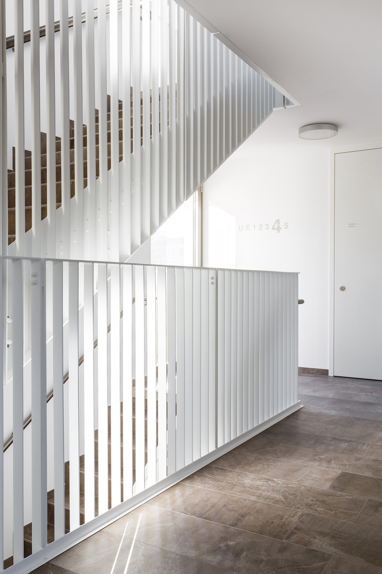 Die verschränkten Höfe erlauben eine Orientierung in alle Himmelsrichtungen. Somit konnten wir jede der 15 Wohnungen unabhängig ihrer Größe nach mehreren Seiten dem Sonnenverlauf nach ausrichten. Großzügige Balkon- und Dachterrassen laden, ergänzt durch strauchartige Rankstangen an den Hofseiten, zur Fortführung der Hofbegrünung ein.