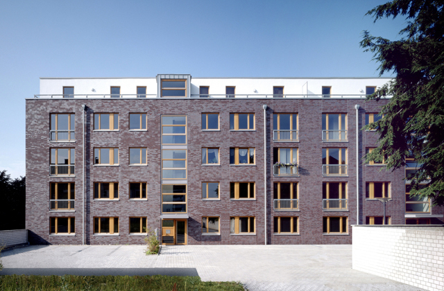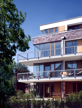 In unmittelbarer Nähe zum Hattinger Altstadtkern wurde eine Wohnanlage mit insgesamt 27 komfortablen Wohnungen von 55 bis 150 qm mit Tiefgaragenstellplätzen, errichtet. Sämtliche Ebenen sind barrierefrei über Aufzüge erreichbar. Die teilweise als Maisonette geplanten 2- und 3-Spänner- Wohnungen öffnen sich über raumhohe Verglasungen zu den nach Süden orientierten Terrassen, Balkonen und Gärten. Die Staffelgeschosse sind gegenüber dem verklinkerten Hauptbaukörper zurückversetzt und mit hellen Putzflächen verkleidet. Treppenhaus- und Südfassaden bestehen aus einer Aluminium-Pfosten-Riegel-Konstruktion mit Holzeinsatzelementen als Öffnungsflügel bzw. geschlossenen Holzpaneelen. Die übrigen Fenster sind ebenfalls als Holzfenster ausgeführt. Die Balkonplatten sind als horizontale Elemente im Farbton Weiß betont.