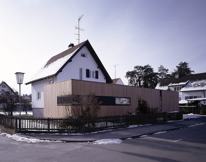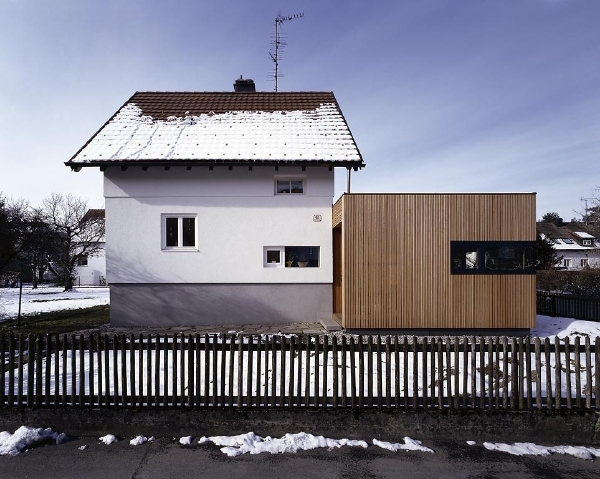 Das bestehende Siedlerhaus war zu klein geworden und sollte generalsaniert werden. Der Zubau wurde als eigenständiger Baukörper konzipiert, der den Garten zur Straße hin abschirmt. Im Zubau sind ein großer Wohnraum mit Veranda und die Garage/Gartenschuppen untergebracht. Im Eingangsbereich verschneiden sich die beiden Baukörper innenräumlich über eine große Öffnung im Altbau. Im Hochparterre des Altbaues befinden sich die Kinderzimmer und ein kleines Bad, im OG des Altbaues wurde der Bereich der Eltern und ein großes Bad eingebaut.