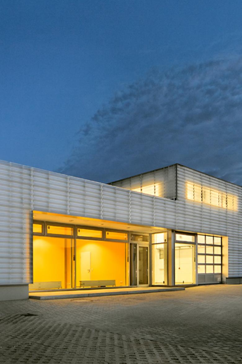 Inmitten eines gesichtslosen Gewerbegebiets gelegen war es das Ziel, dem Gebäude trotz geringem Budgets eine Identität zu geben.