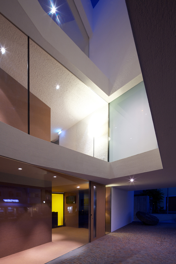 das hotel an einer schnittstelle der stadt, an einer schnittstelle zwischen innen und außen, zwischen tradition und moderne. ein übernehmen der merkmale, charakteristiken der stadt. die idee eines kompakten baukörpers geschossweise zu zerlegen um genügend licht ins innere zu lassen. ein spiel mit lichthöfen. die einzelnen geschosse werden horizontal verschoben, um einen freien und trotzdem kompakten baukörper zu erhalten. schubladenartig bewegt sich der raum; wo sich die altstadt in vertikale sektoren aufteilt, gewinnt sie hier die horizontale dimension. eine kontinuierliche fassade – nur zwei fenster zur stadt, der raum projiziert sich nach außen in form eines massenspiels, der dadurch öffentlichen raum generiert. die auskragungen wirken wie erker, ausstülpungen in der fassade. das licht durch innenhöfe ins innere geführt, gänge, zimmer, wegräume in einer lichtdurchfluteten intimität.