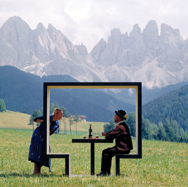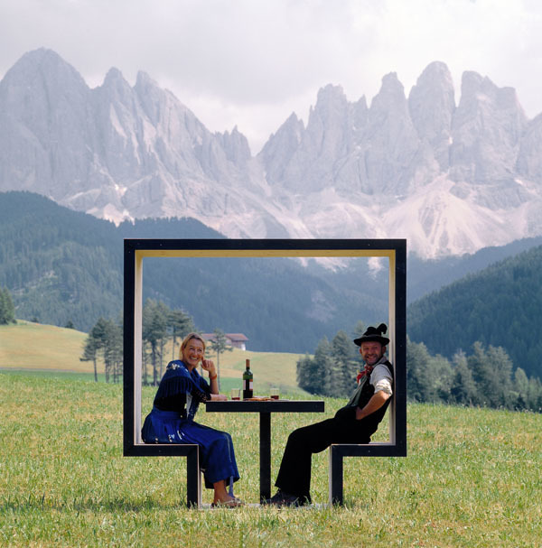 lois ist die neuinterpretation einer modernen stube, eine art stadtmöbel für den alpinen raum. eine 2x2m große, handwerklich aus massivem zirbenholz gefertigte rastbank, die zum verweilen und wein genießen einlädt. ein bilderrahmen in der landschaft.