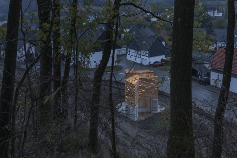 Diese Installation befindet sich auf dem Mehrgenerationenplatz von Referinghausen. Im unteren Teil sind aus zwei Betonkuben Sitzgelegenheiten für Jung und Alt herausgeschnitten worden. Bei der Herstellung haben die Dorfbewohner alte Fenster, Türen und Erinnerungsstücke von innen an der Betonschalung befestigt, um so einen permanenten Abdruck für die künftige Generationen zu hinterlassen. Der obere Teil besteht aus Holz, aus dem früher die Fachwerkhäuser im Sauerland errichtet wurden und dient zum einen als Dach und zum anderen als zentraler Leuchtkörper für die Abendstunden.