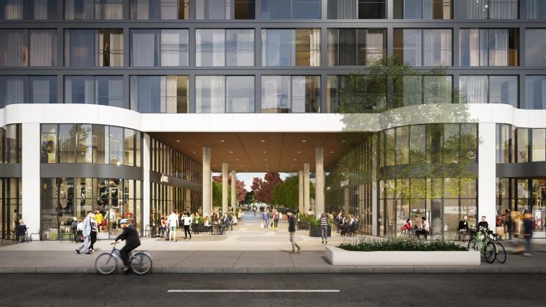 The total development is 161,391 square meters, adding 2,080 residential units to this area of Steeles Avenue West.