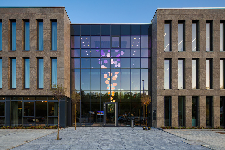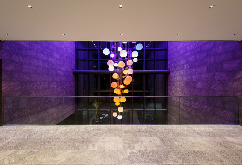 Je nach Jahres- und Tageszeit oder sogar nach besonderen Ereignissen verändert sich die Stimmung in der Lobby mit einem besonderen, spielerischen Lichtobjekt, welches jedes Mal ein neues Erlebnis schafft. Die Halle verbindet den Verwaltungsbau und das Hotel. Die Büros, Schulungs- und Konferenzräume wirken hell und freundlich. Sie sind mit Langfeldleuchten und einem hohen Lichtkomfort ausgestattet.