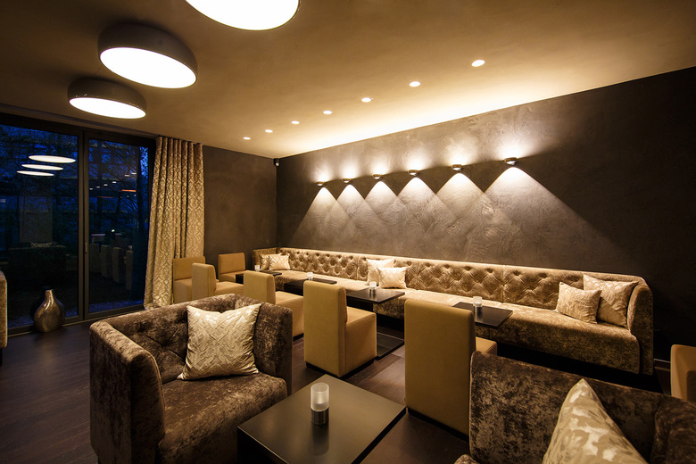 Das Restaurant ist mit besonderen Elementen ausgestattet, welche sich farblich mit der Tagessituation einen Bezug zur Eingangshalle herstellen. Das Lichtambiente in Restaurant und Lounge verändert sich über den Tag von freundlich hell bis gediegen und intim am Abend.