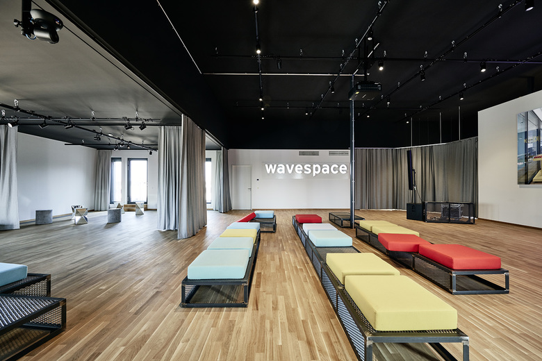 Dem großen Wave Space steht im 5. OG der kleine gegenüber, der mit einer Vortragsarena sowie Tischinseln für konzentriertes und kommunikatives Arbeiten ausgestattet ist. Zahlreiche große und kleinere Studios, die auch von externen Startups gebucht werden können, dienen der interaktiven Kollaboration. Zwei Co-Creation Areas bieten eine Arbeitsumgebung, wo das Ökosystem zusammenkommt und neue Technologien und Business Ideen entwickelt werden.