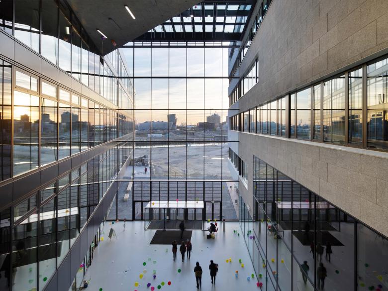 Das fünfgeschossige Gebäude an der Überseeallee in der Hafencity bietet neben Hörsälen, Werkstätten, Laboren und Büros eine Mensa und eine Bibliothek - mit allerschönstem Blick auf die Elbe. Knapp 2.500 Studierende lernen nun am Puls des in Europa größten innerstädtischen Stadtentwicklungsprojektes.