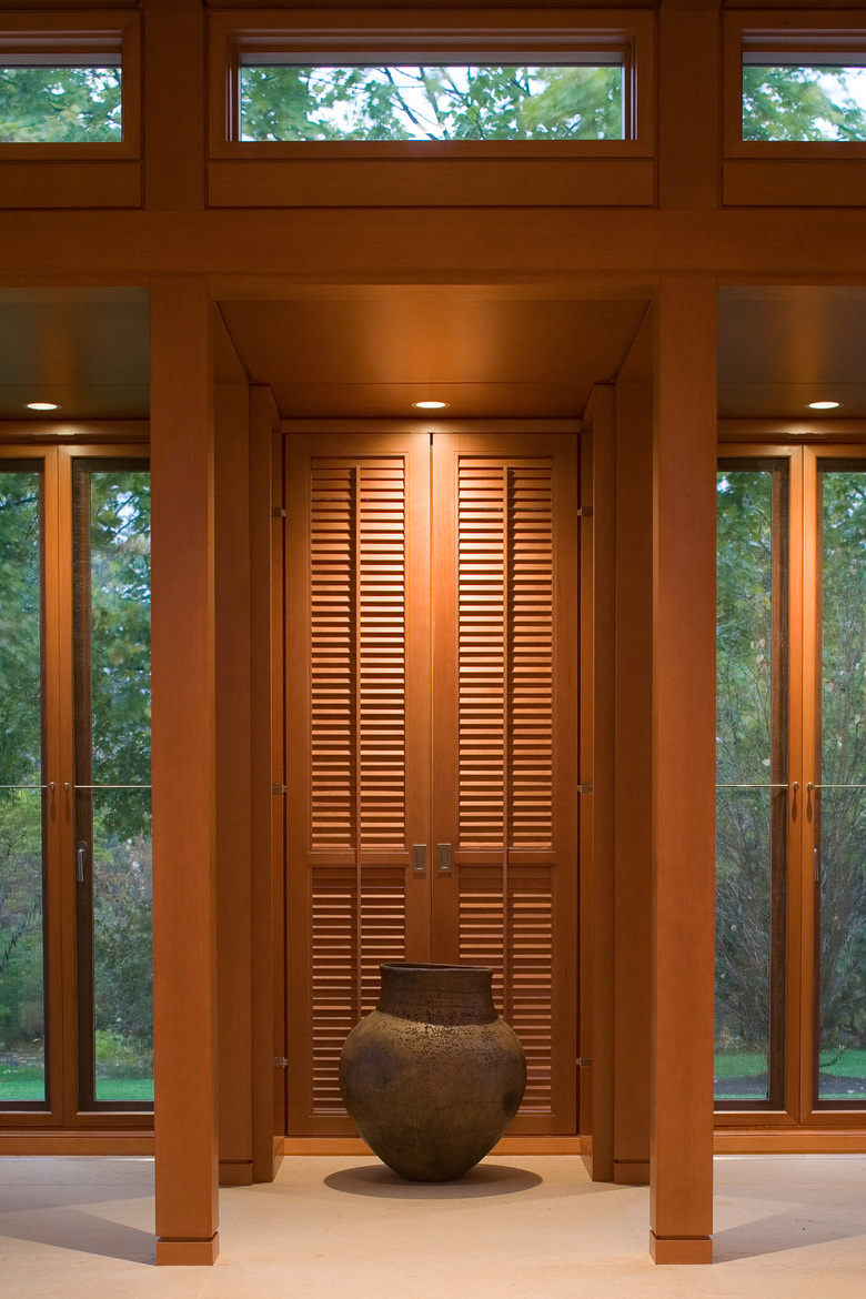 This renovation and addition to a country house outside Chicago, Illinois provides generous and contemporary living spaces to accommodate both large and small family gatherings within the context of the existing traditional structure. The renovation allows for clear and open circulation throughout the main living spaces, while several new volumes add space and light while connecting the house with its surrounding landscape. A series of windows overlooking a central courtyard establishes a rhythm of opacity and transparency that connects the new and old sections of the house.