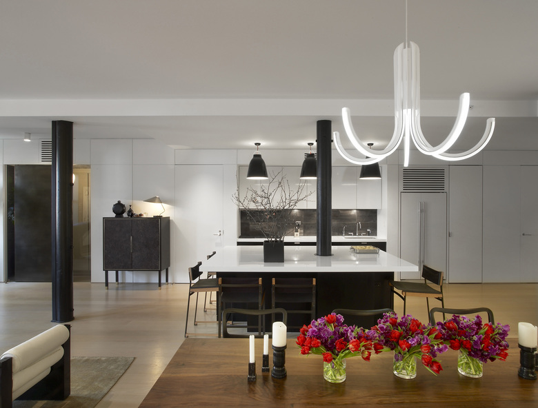 This interior loft renovation focuses on the integration of architectural elements and unique works of art to elevate a modest space into a relaxed, yet luxurious urban residence. The primary design intent is to maintain an open floor plan providing flexibility in use and allowing for the maximum infiltration of natural light throughout the entirety of the space. The large art installations throughout the loft create an environment that is reflective of the urban culture and context.