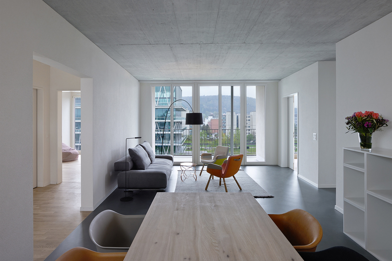 Wo Plätze, Gassen und Grünflächen die Qualitäten des öffentlichen Raums bestimmen, braucht es städtische Dichte. Eine spannungsreiche Sequenz der Aussenräume sowie publikumsorientierte Nutzungen im Erdgeschoss beleben das Quartier. Neben dem reichen Angebot an gemeinschaftlich genutzten Räumen werden auch individuelle Rückzugsräume immer wichtiger. Die Besonderheit dieses Projekts liegt genau in diesem Spannungsfeld: Geborgenheit und Privatsphäre auf der einen Seite und dem vielfältigen Angebot, an der Gemeinschaft teilzunehmen, auf der anderen Seite.