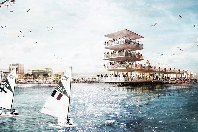 Mit dem Olympiazentrum Schilksee stellt Kiel seine Leistungsfähigkeit seit mehr als 40 Jahren unter Beweis. Schilksee ist Kiels traditioneller Segelstandort und Basis des deutschen Segelsports – international bekannt, erprobt und etabliert. Mit dem Gelände des ehemaligen Marinefliegergeschwaders in Holtenau verfügt Kiel zugleich über ein einzigartiges Areal, wie es zukunftsweisender kaum sein könnte. Holtenau ist Kiels Perspektive auf neue, urbane Olympische Segelwettbewerbe – modern, städtisch und visionär. Mit der Weiterplanung kann Schilksee noch einmal zu einem neuen Olympiazentrum werden. Mit einer Infrastruktur, die nicht nur die Anforderungen des Jahres 2024 erfüllt, sondern auch darüber hinaus zukunftsweisend ist. Mit einer anspruchsvollen Mischung aus neuer Bebauung und der Modernisierung bestehender Strukturen. Dabei wird das bewährte Rückgrat des gesamten Komplexes zum Ausgangspunkt der baulichen Weiterentwicklung: Von dem nach Osten offenen und barrierefrei zugänglichen Boulevard im zweiten Obergeschoss mit seinen Geschäften, Restaurants und der eingebundenen Schwimmhalle haben Zuschauer auch 2024 beste Sicht auf das Hafenvorfeld, ohne dabei die Athleten bei ihren Vorbereitungen zu beeinträchtigen.