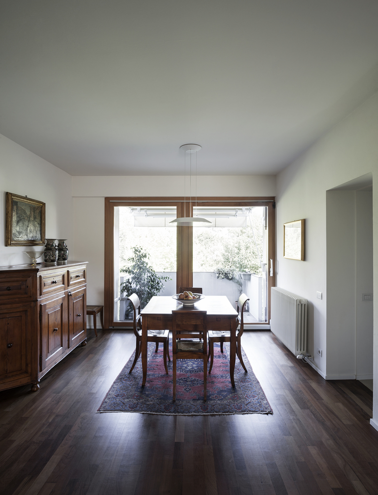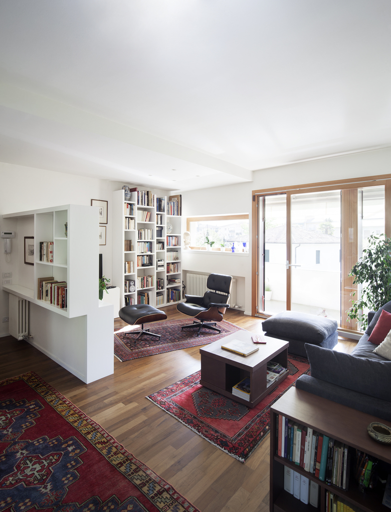 Through the refurbishment of this apartment in Treviso, we wanted to give the space a new spatial definition and a silent shape that could act as a background for the daily life so that the new intervention does not interfere with the furniture and objects that represent the history and the memories of the owner.