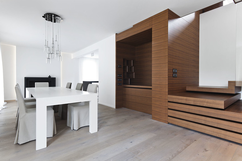 The careful and balanced succession of white and wooden surfaces defines the spatial diversity of the each room producing cold and warm perceptions, and different luminous and tactile sensations.