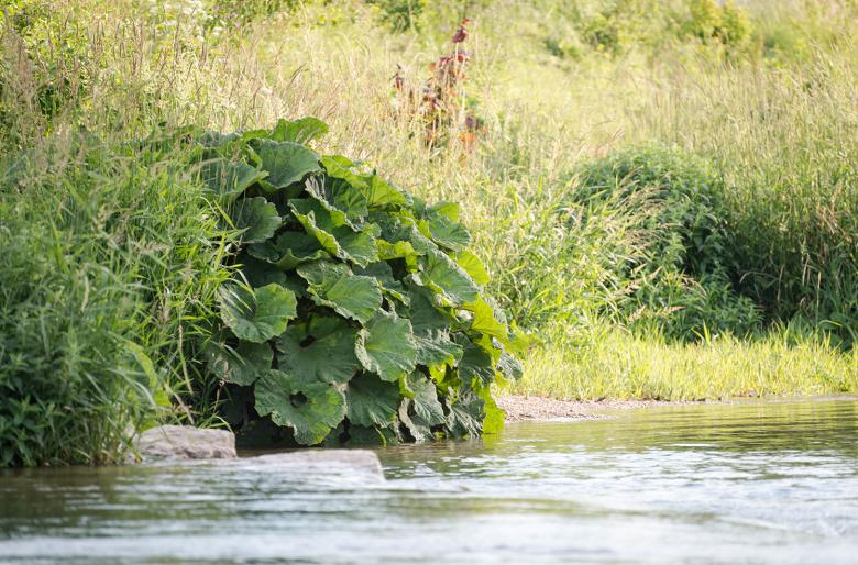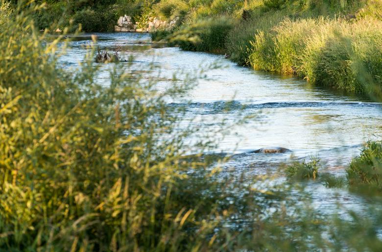Wie eine Wasserscheide gliedert die mäandrierende Dammkrone die Insel in zwei Teile. Durch die variable Uferneigung kann die Uferlinie bei Hochwasser auf der Schüss-Seite bis kurz vor die Dammkrone wandern. Die temporäre Überflutung von Teilflächen schafft nicht nur ein dynamisches Parkbild, sondern auch wertvolle Lebensräume.