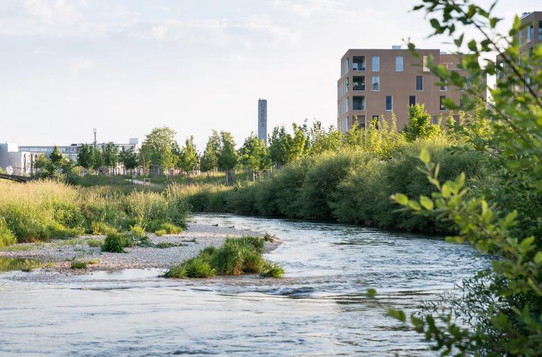 Hochwasserschutz, ökologische Ansprüche und die Nutzerbedürfnisse verknüpft der Entwurf zu einer Erholungsinsel; einer Symbiose zwischen Park und Landschaft.