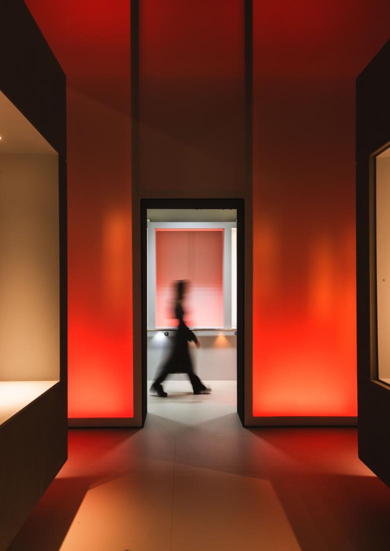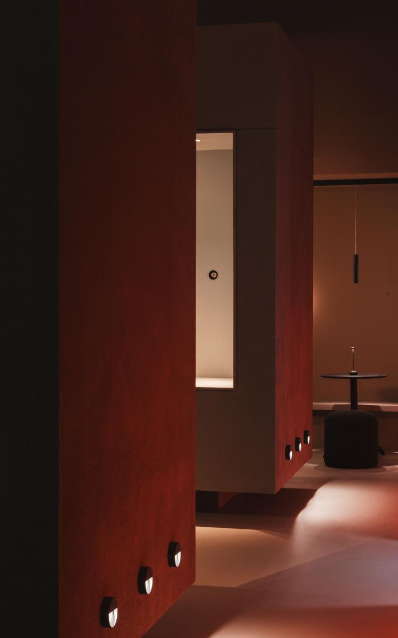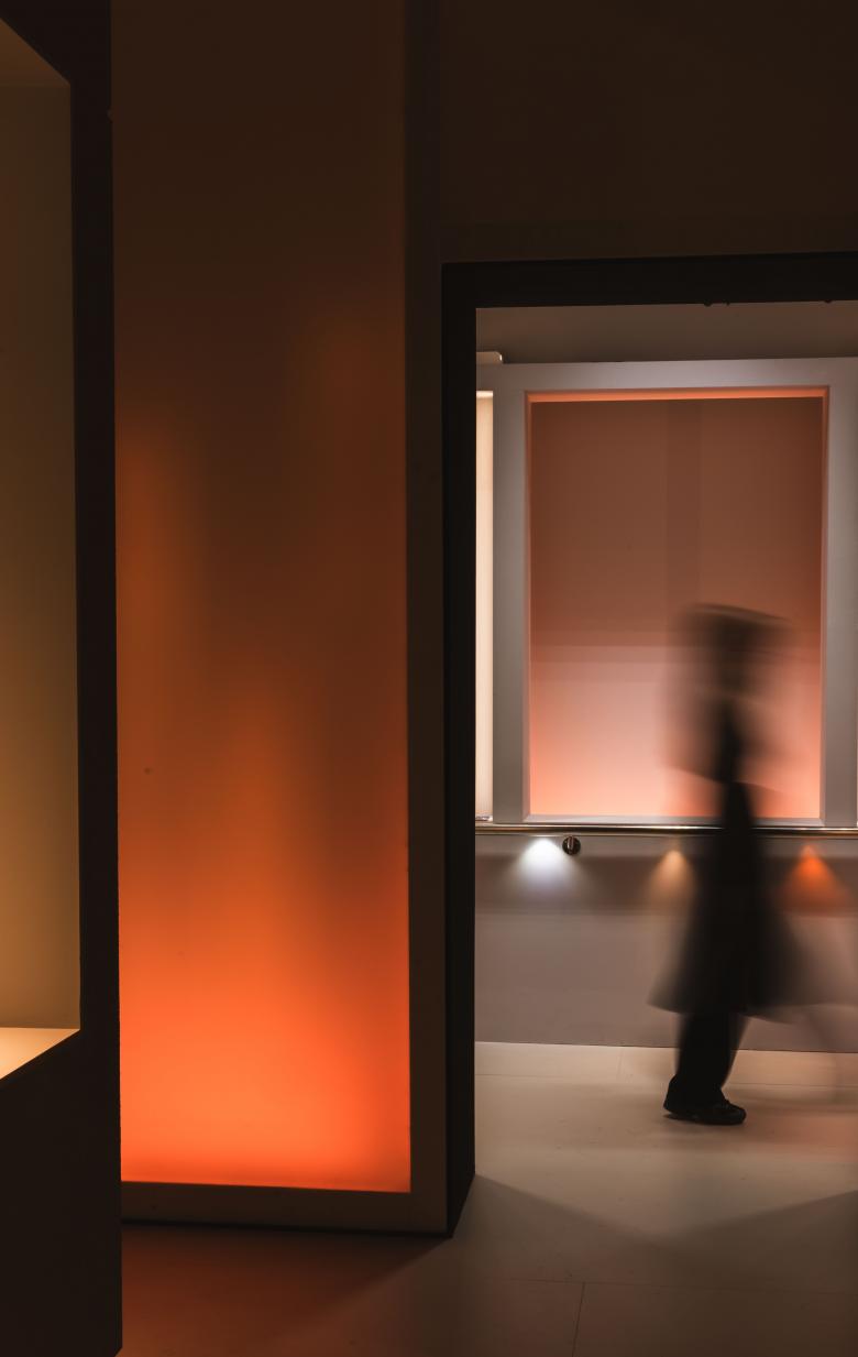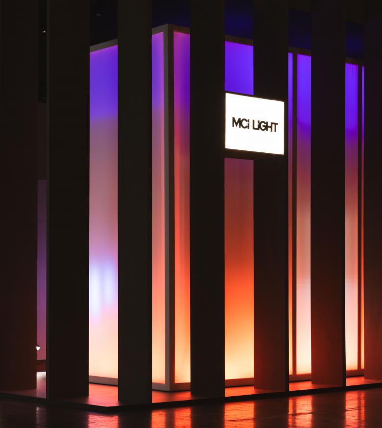 Un stand que no solo alberga luz: se convierte en un cuerpo luminoso en sí mismo. Como escribió James Turrell: "La luz no es tanto algo que revela, como algo que es en sí misma la revelación".