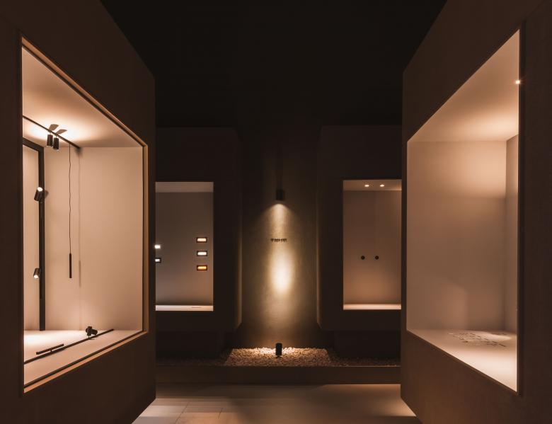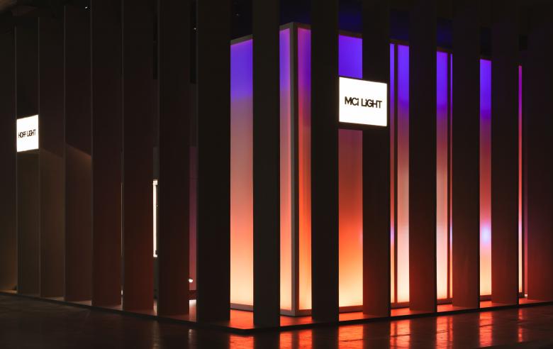 En el interior, las últimas colecciones de MCI LIGHT se presentan como si estuvieran sostenidas por la propia luz, en un entorno comisariado que fusiona tecnología, diseño y atmósfera. Un recorrido cálido y sensorial guía a través de distintos volúmenes expositivos independientes, donde también aparecen las propuestas más táctiles y accesibles de HOFF LIGHT, invitando a la interacción a través del tacto.