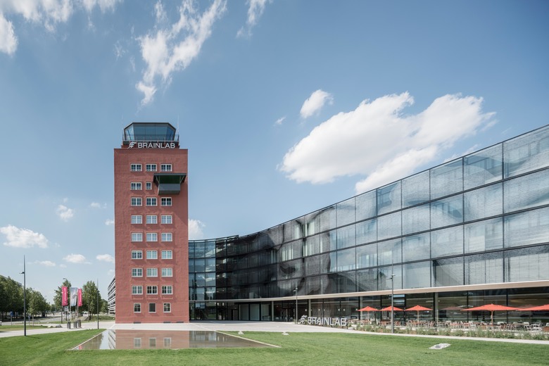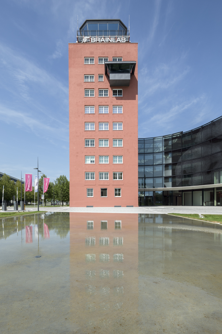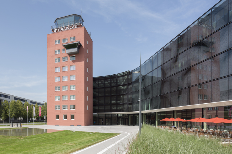Im Münchner Osten, am Eingang zur Messestadt Riem, hat WÖHR + BAUER für die Firma BRAINLAB einen neuen Hauptsitz errichtet. Der denkmalgeschützte Tower des Flughafens, eine von wenigen Reminiszenzen an die alten Nutzung, soll in das Vorhaben für BRAINLAB integriert und so einer neuen Nutzung zugeführt werden.