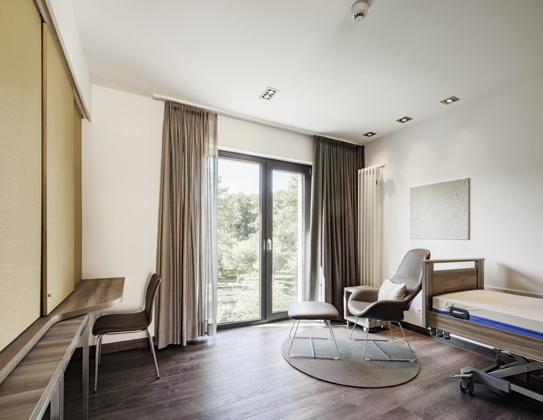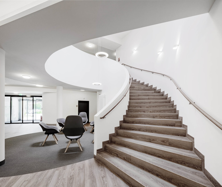 Das innenarchitektonische Konzept greift die wesentlichen Merkmale des architektonischen Konzeptes auf und trägt sie in die Ausgestaltung der Innenräume weiter. Zum einen wird die geschwungene Formsprache der Kubatur aufgenommen und zum anderen verstärken die Sichtverbindungen im Außen- und Innenraum den Ausdruck einer nicht stigmatisierenden Gesundheitseinrichtung. Im Hinblick auf die lange Verweildauer der Patienten, wurde sehr viel Wert auf den Innenausbau gelegt, der eine hohe Aufenthaltsqualität gewährleistet.