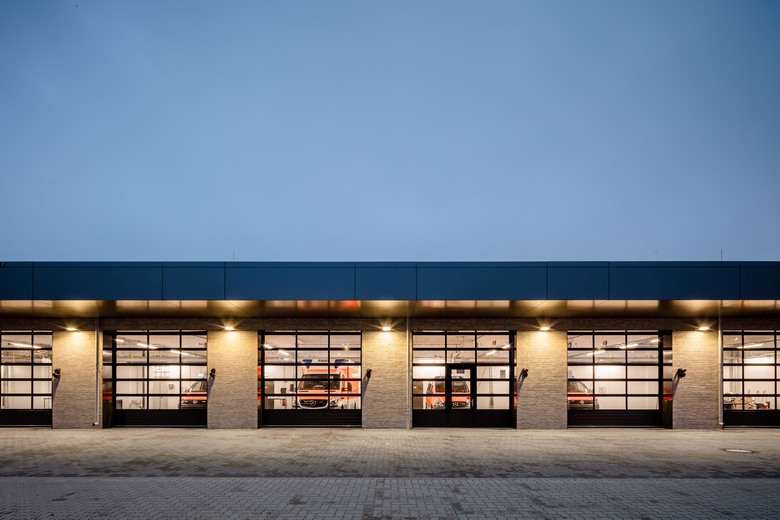 Die klare Gliederung und Ablesbarkeit der Nutzungen wird auf die Fassadengestaltung übertragen. Die Fahrzeughalle ist zudem mit einem großen Vordach als Schutz vor Regen oder Wärme ausgestattet. Die Aufenthalts- und Ruheräume sind mit einer gleichmäßigen Lochfassade versehen. Der Eingang wird durch ein weiteres Vordach betont.