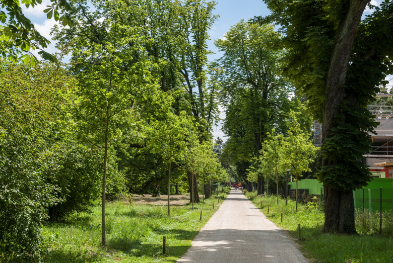 Diese drei Gestaltungselemente sind auch heute noch ablesbar und wurden für zukünftige Entwicklungen in den Idealplan integriert. In einer ersten Umsetzungsetappe wurden die noch bestehenden Alleebäume mit einer Vielzahl neuer, junger Bäume wieder zu einem eindrücklichen Gesamtbild komplettiert. Zudem erreicht man das Guthaus über die Allee nicht mehr auf der Parkseite, sondern wieder nach historischem Vorbild auf der Ostseite mit weitem, tronenden Blick über die Stadt. Weitere Erneuerungsetappen sollten folgen, damit auch für zukünftige Generationen die eindrückliche Schönheit und die besondere Atmosphäre des Parks in allen Facetten erhalten bleiben.